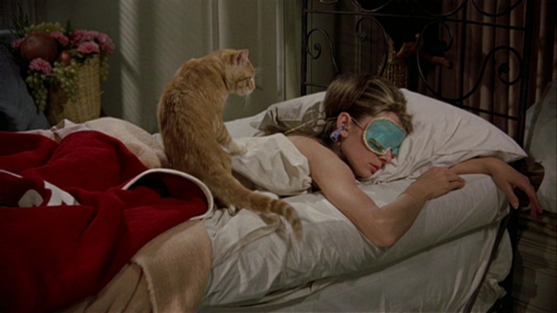 des allusions à l'homosexualité. En réalité, ça n'a pas d'importance, la notoriété du film a dépassé celle du livre; il est devenu, clairement, un "véhicule" pour Audrey Hepburn, en même temps qu'un passionnant champ d'expérimentation pour le Blake Edwards des grands jours. Bien sur, l'écrin est splendide, et le film est toujours envoûtant pour son coté intemporel, et la puissance de son esthétique, due autant à la grâce de miss Hepburn qu'à l'inventivité de Edith Head, costumière de luxe à la Paramount, qui a d'autant plus revendiqué ce film que sa contribution est cruciale; on s'y habille et déshabille beaucoup, devant nous, y compris dans un taxi à la fin! Le costume y définit les deux vies excentriques de Paul et Holly, lui enchaîné à sa maîtresse et les costumes qu'elle lui offre, et elle utilisant sa garde-robe comme une déclaration d'indépendance permanente. Le propos principal tient à mon sens dans deux scènes clés, la première étant celle durant laquelle, surprise, le mari de Holly, un habitant de l'Oklahoma qui la connait sous son nom de Lula Mae, vient la chercher, pensant naïvement la reprendre. Il l'a épousée alors qu'elle avait 14 ans, et on s'attend à un développement façon Child Bride (le fameux film de "sexploitation") ou même Mountain justice, de Curtiz, ces films qui nous racontent la vie fruste des montagnards franchement arriérés; Mais à l'arrivée de Doc, son mari, Holly est réellement heureuse de le revoir. On pourrait accabler le mari, se dire qu'avec un départ dans la vie comme celui-ci, Holly ne pouvait que se fuir; on évite pourtant la dénonciation, pour entrer de plein-pied dans la question cruciale: mais qui est vraiment Holly? C'est la question à laquelle elle ne veut pas répondre, de même qu'elle met un point d'honneur à ne pas nommer son chat, dont elle assure qu'il aura un nom "quand elle aura son chez-soi, avec ses meubles". Autant dire jamais. La deuxième scène est importante, à plus forte raison parce que c'est la fin du film, lorsqu'après un passage en prison (pour diverses raisons, savoureuses, mais passons) elle décide dans un taxi de libérer son chat, et voit fuir Paul excédé (en substance, il en a marre de ses excentricités), et comprend qu'elle l'aime et va devoir, enfin, se fixer, quel qu'en soit le prix. Très belle scène d'amour, avec l'ingrédient des grands jours, une pluie battante, et l'indispensable petite touche surréaliste: entre les deux amants, un chat trempé, qui se demande ce qu'il fait là...
