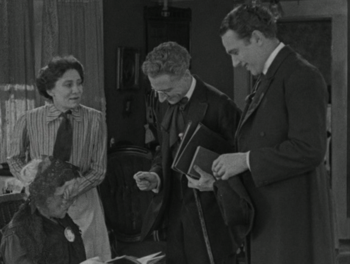 Pourtant, c'est paradoxal: elle fait semblant de commencer son film, qui explore les liens sociaux entre les membres d'une même communauté unis par des liens aussi ténus que l'éducation et le voisinage, avec une vision des hommes! Un intertitre, joliment décoré comme le sont beaucoup de cartons des copies en existence, nous dit que les hommes, finalement, ne sont que des garçons, qui ont grandi. Il précède la première séquence, assez cruelle, qui nous montre des étudiants qui ont tendance à chahuter leur professeur, surtout trois sales gosses de riches, qui contrairement à leur professeur mal payé, ont tout ce qu'ils veulent. Nous allons surtout nous intéresser à Phil West (Louis Calhern), un dandy, fils à papa, oisif notoire et coureur de jupons... Mais il y a un lien pourtant entre lui et son professeur, l'auguste M. Griggs (Philip Hubbard): celui-ci est le père de la très jolie Amelia (Claire Windsor), qui travaille à la bibliothèque, un lieu désormais fréquenté chaque jour par Phil, ce qui le change du reste beaucoup... En fréquentant la jeune femme, Phil remarque le dénuement de la famille Griggs, mais aussi le sacrifice d'Amelia qui doit travailler pour compléter la paie de son père. Il va aussi être amené à rencontrer son rival pour les affections de la jeune femme, le pasteur local. Il ne paie pas de mine, mais Phil est très étonné de trouver sa compagnie agréable: c'est que tous les deux ont un bon coup de crayon! Ils seront rivaux, tout en devenant amis. Et le pasteur va apprendre à Phil qu'on est plus heureux en donnant qu'en recevant... Une phrase qui sera cruciale dans la transformation du jeune homme en un adulte bien différent... Pour commencer, il viendra en aide à la famille Griggs.