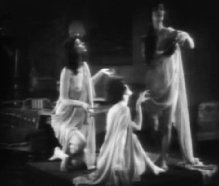 ...De suggestion ? Le film contient une inconsistance majeure : d'un côté il semble qu'Haddo soit réellement doté de pouvoirs, ce qui évidemment ouvre la porte à une interprétation magique au premier degré. Sauf que vers la fin du film, un intertitre nous apprend qu'il est en réalité totalement dingo. Ce qui pose évidemment problème, puisque un (excellente) scène nous montre, en effet, Wegener emmener avec lui Alice Terry dans un monde inquiétant de faune, de diables et de sorcières... Et qu'à deux ou trois reprises, il l'hypnotise comme un rien.